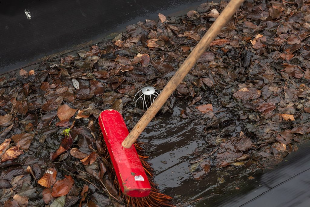 - Clear the Clutter (Safely!): Have your maintenance team or a qualified professional safely remove all visible leaves, sticks, and debris from the roof surface, paying extra attention to the areas around all drains, scuppers, and parapet walls.